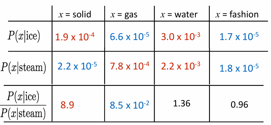 - 단어 ice와 steam은 둘 다 물과 관련 있음